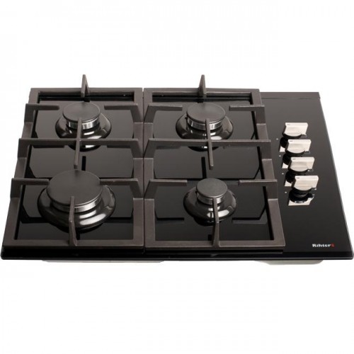 ОСОБЕННОСТИ: • Закаленное черное стекло • Система «газ-контроль» • Автоматический розжиг горелок стола • Фиксированное положение «малое пламя» • Фиксированное положение «большое пламя» • Двойные чугунные решетки • Боковое расположение ручек управления • Природный/сжиженный газ (жиклеры в комплекте) • Усиленные металлические ручки
